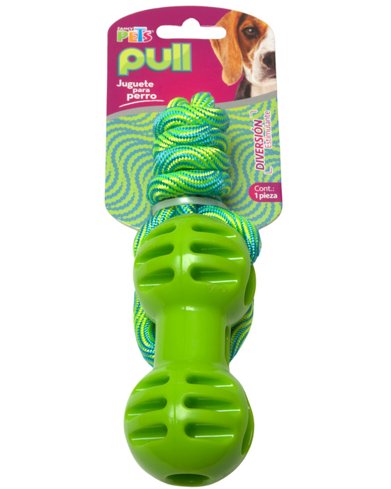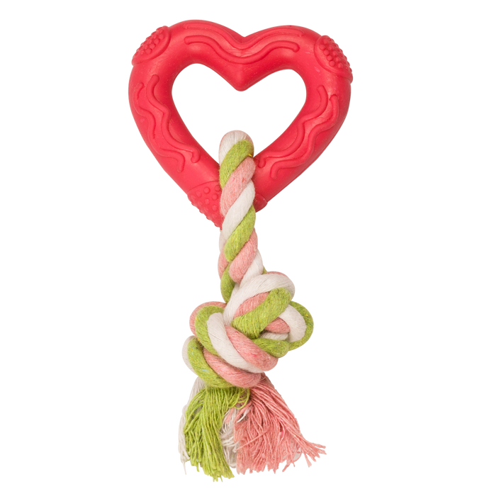 Juguete de caucho triángulo con cuerda de tejido apretado.