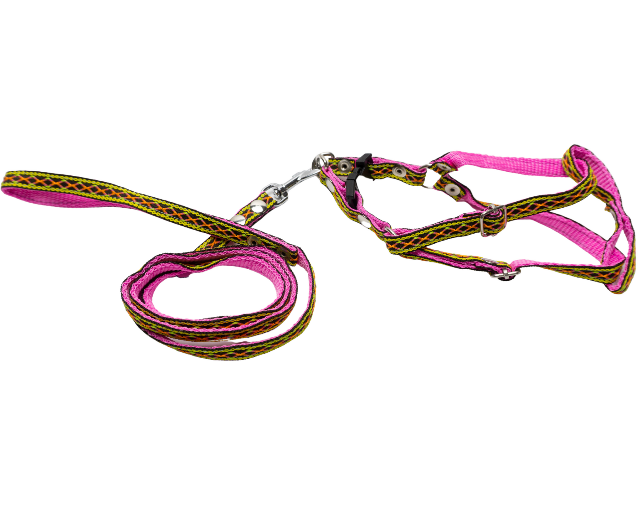 Hermosa pechera con correa, de colores muy atractivos, para perros pequeños y gatos.