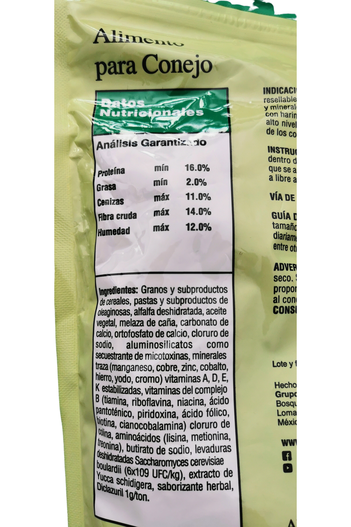 Alimento para conejo, fortificada con vitaminas y minerales.