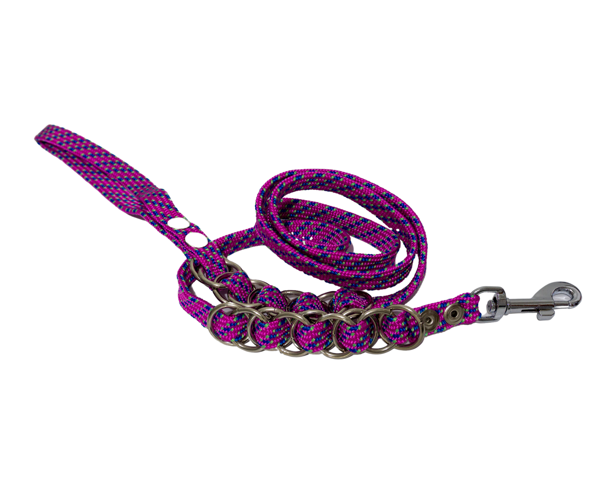 Correa de piola, con un diseño moderno, con adornos de argollas metálicos.