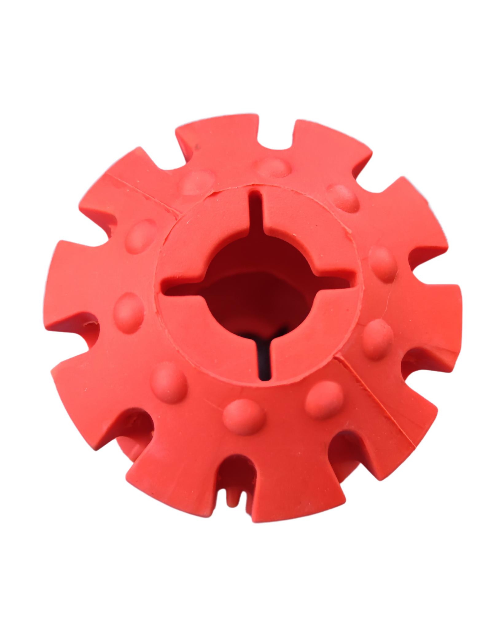 Juguete tipo tronco dispensador de caucho para perro.