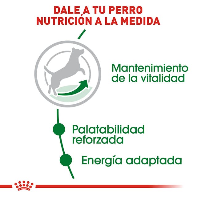 Ayuda a mantener el peso ideal en los perros de razas pequeñas gracias a una fórmula que satisface sus elevadas necesidades energéticas y contiene L-carnitina para promover el metabolismo de las grasas.